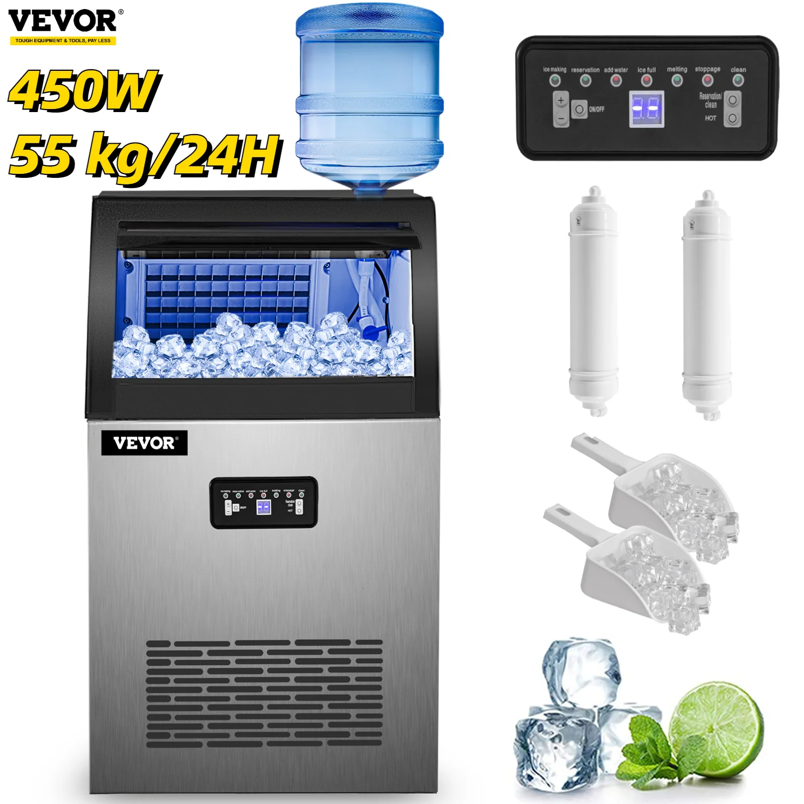 VEVOR Commercial Ice Maker VEVOR 110V Commercial Ice Maker 132LBS24H with 39LBS Bin Clear Cube LED Panel Stainless Steel Auto Clean Include Water Filter Scoop Connection. Power wire should not exceed 10m. ① Faster Brand and powerful compressor for rapid ice makingone cycle in just 8-15 minutes and up to 110-120lbs of ice in 24 hours.